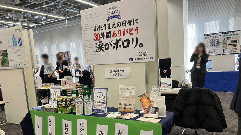 一般社団法人 日本食品包装協会が主催する、最先端のパッケージ技術の祭典に出展 いたしました。 弊社固有の易カット技術「ポロソ」や環境配慮の紙パッケージ包材などを展示しまし た。